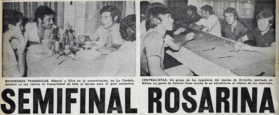 Por su parte, Rosario Central lo haría con Norberto Menutti; Jorge José González, Aurelio Pascuttini, Alberto Fanesi y Mario Killer; Carlos Aimar, Ángel Landucci y Carlos Colman; Ramón Bóveda, Aldo Pedro Poy y Artemio Gramajo.
