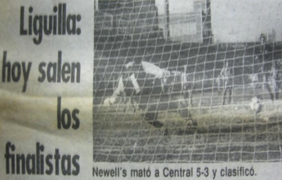 Fue un partidazo. Lleno de goles. Newells ganó 5 a 3. Abrió el marcador Rosario Central con gol en contra del Chocho Llop. Empató Blas Taffarel de penal. En el segundo tiempo pasó de todo. A los cuatro minutos, se escapó el Ciego Fullana por derecha, mandó el centro y nuevamente Taffarel. Tres minutos después, un joven Gabriel Omar Batistuta la paró de pecho en el área y fusiló al Doctor Alejandro Lanari. El mismo gol que haría mil veces más. 3 a 1. Descontó Juan Antonio Pizzi tras gran jugada de David Bisconti. El veterano Víctor Rogelio Ramos pondría el 4 a 2 de cabeza, tras centro de Bati. Rosario Central sufrió las expulsiones de Pizzi y Bisconti. Con nueve jugadores, descontó Edgardo Bauza de tiro libre. 4 a 3. Sobre la hora, cuando Central buscaba una hazaña histórica, Gabriel Batistuta marcó el 5 a 3 final. Las camisetas leprosas fueron a para la tribuna. Pasarán casi veinte años para que el clásico rosarino vuelva a salir de su ámbito natural.