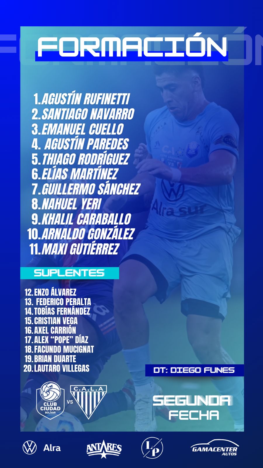 Para este encuentro, Lemos repitió el equipo que empató en la primera fecha ante Almirante Brown, el dt le ratificó la confianza a Matías Gómez (de escaso compromiso) y Los Andes volvió a flaquear por ambas bandas en la mitad de la cancha.